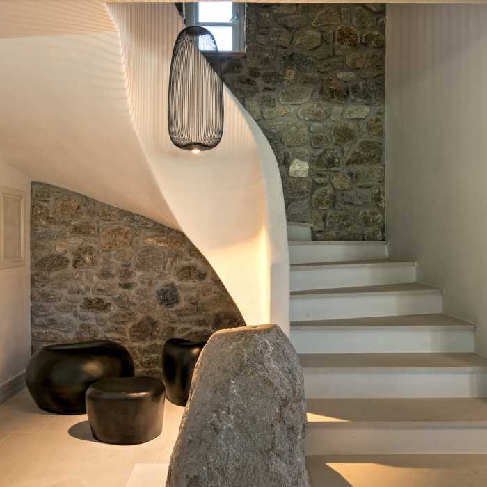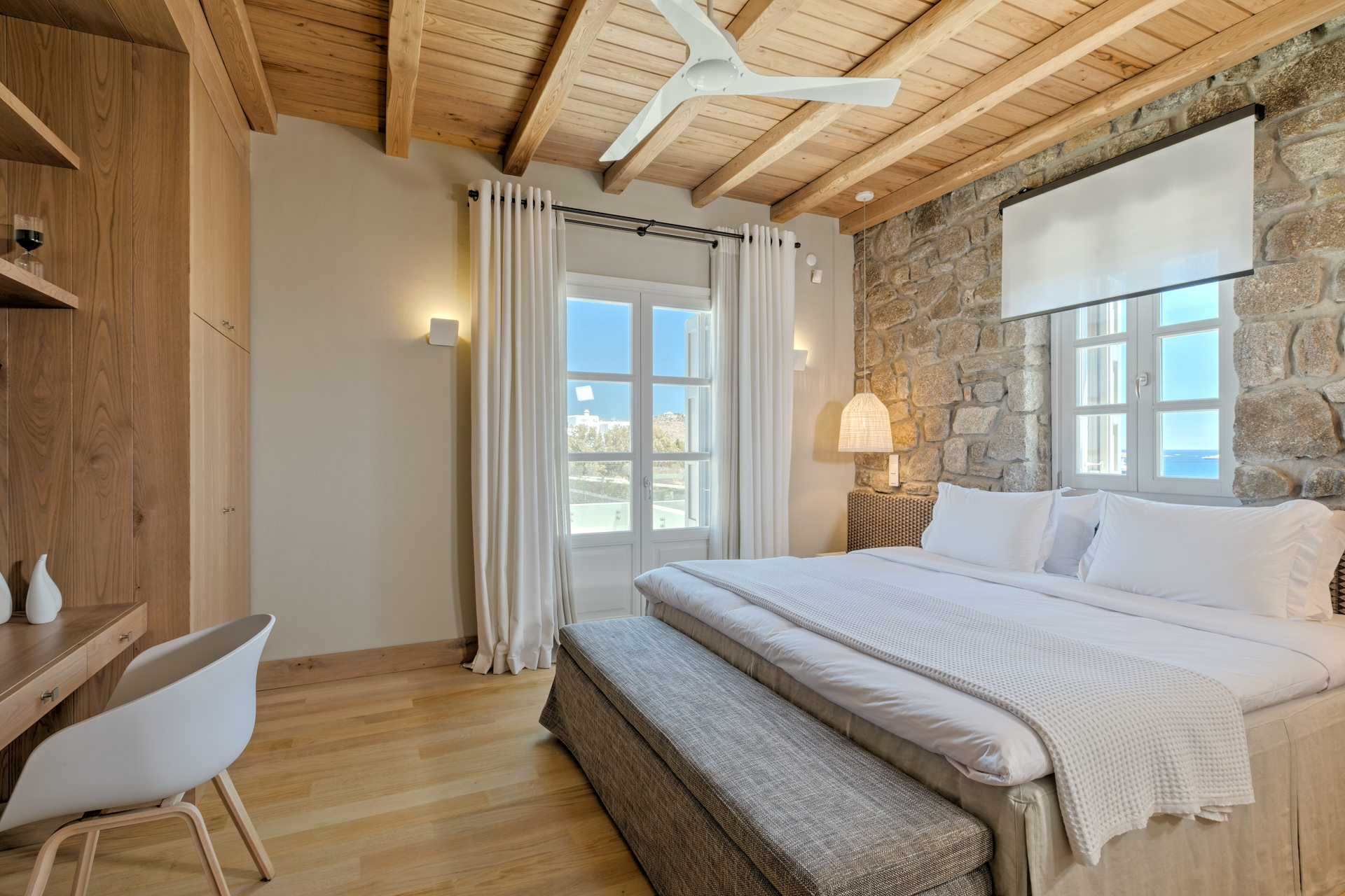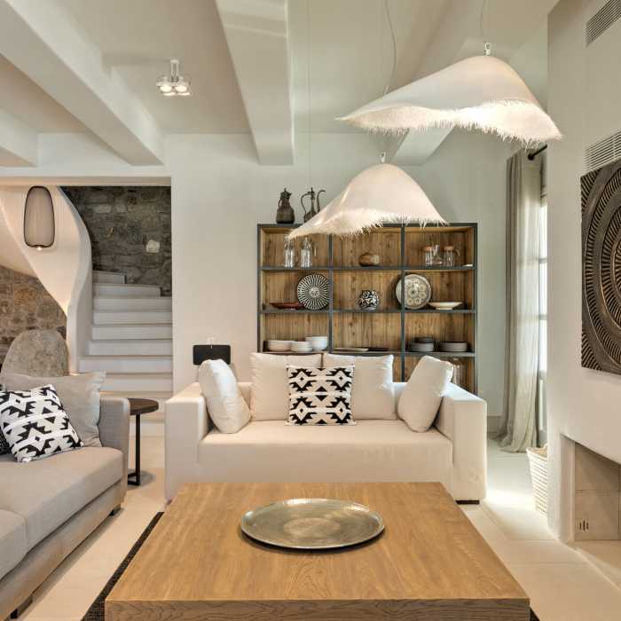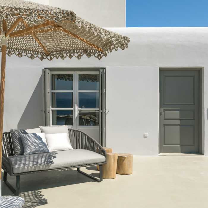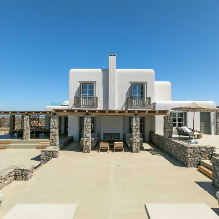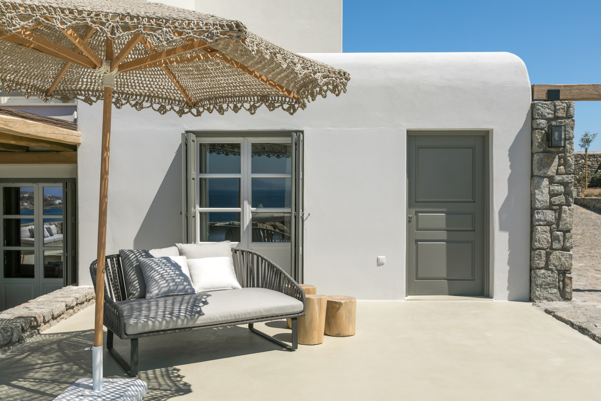 Villa Arion is a gorgeous newbuilt villa in Aleomandra, Mykonos, which welcomes guests since July, 2018. The beautiful 350 sq. m. property consists of 3 bedrooms and 2 guestrooms and streches on a 4,000 sq. m. plot which overlooks the Aegean Sea, with olives and other mediterranean plants.